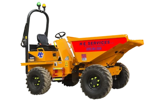 Expert Advice and Support: Our knowledgeable team at H. E. Services is always on hand to help you select the ideal dumper for your project. We offer expert advice to ensure you get the right equipment for the job.